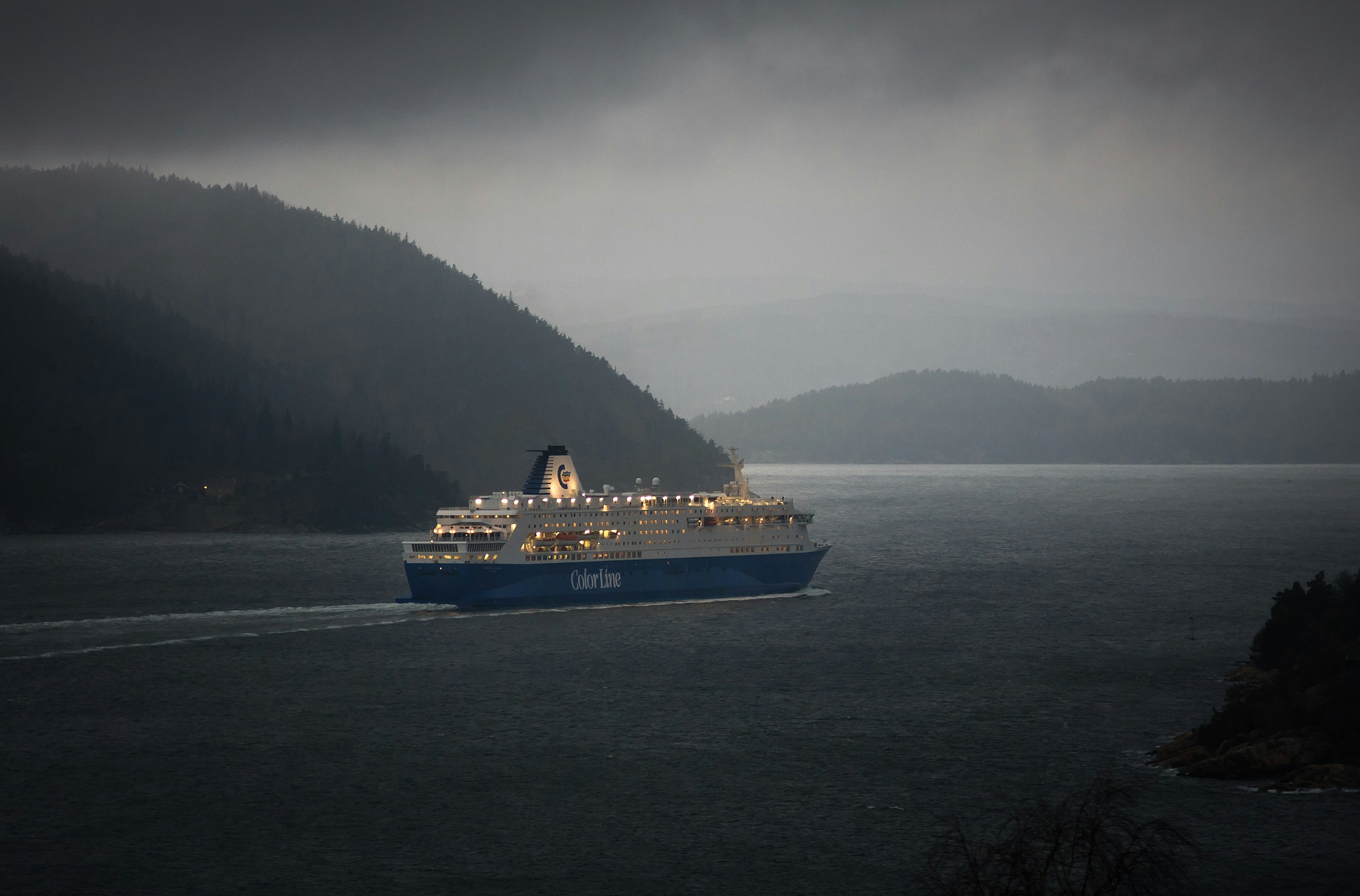 The ferry from North to South Island, New Zealand, takes around 3.5 hours, depending on the weather.